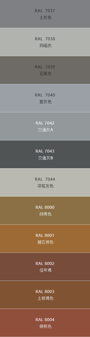 什么是RAL色卡?自從1927年,當(dāng)RAL涉入色彩時,就創(chuàng)建了一種統(tǒng)一的語言,為豐富多彩的顏色建立標(biāo)準(zhǔn)統(tǒng)計和命名,這些標(biāo)準(zhǔn)在世界范圍內(nèi)被廣泛的理解和應(yīng)用。 4位數(shù)的RAL顏色作為顏色標(biāo)準(zhǔn)已達(dá)70年之久,至今為止已發(fā)展到200多種。無光澤的顏色基礎(chǔ)色卡為RAL-840HR,有光澤的為841-GL,這些顏色基本色塊滿足了大范圍的應(yīng)用,已被許多重要公司及研究機構(gòu)所使用。RAL-840HR及RAL-841GL 顏色注冊都作為顏色樣本應(yīng)用于設(shè)計中,同時它們也包括了安全和信號色符合DIN及ISO規(guī)定的顏色要求。